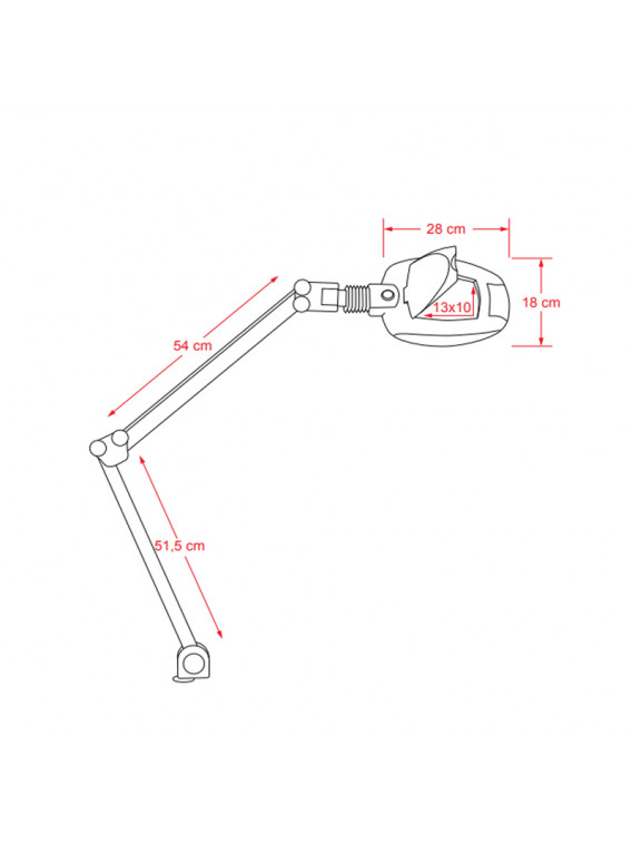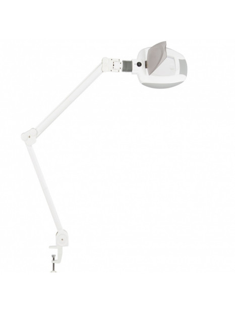 Equipada con un brazo articulado y mordaza para fijación en mesas o carritos de belleza.
