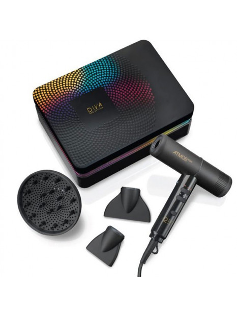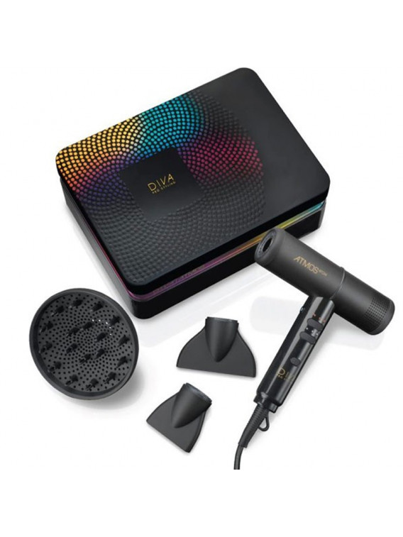 El secador de mano Atmos Atom ultracompacto que pesa ¼ del peso de un motor de CA profesional típico, sin comprometer la fuerza o la potencia.