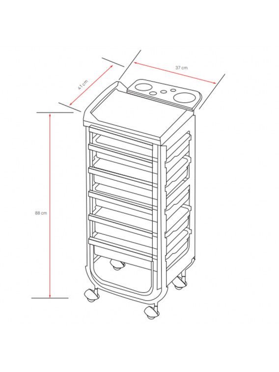 Carrito de peluquería con 5 cajones extraíbles y bandeja superior para almacenar tus herramientas.