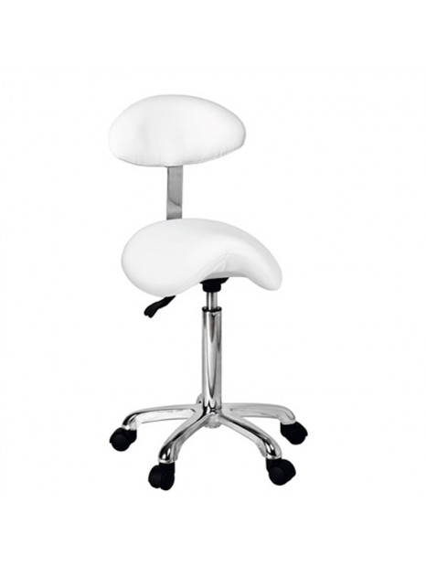 Altura regulable mediante pistón de gas. Tapizado blanco en PU de alta calidad y base cromada con 5 ruedas.