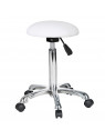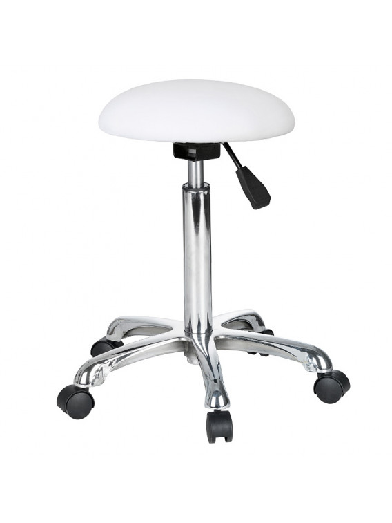 Tapizado blanco en PU de alta calidad y base cromada con 5 ruedas.