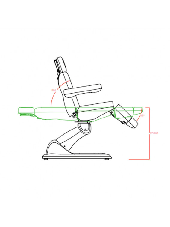 Dispone de 4 motores que controlan la altura, la inclinación del respaldo, del asiento y del reposapiés.