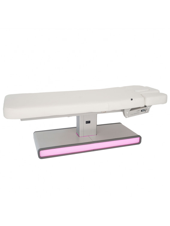 Camilla de SPA de 3 motores que regulan la altura y la inclinación del respaldo y del reposapiés.