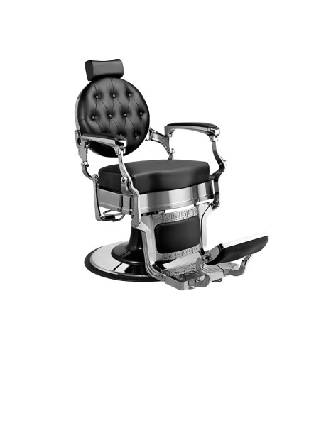 Sillón de barbería sofisticado, con un chasis completo metálico de inyección de aluminio.