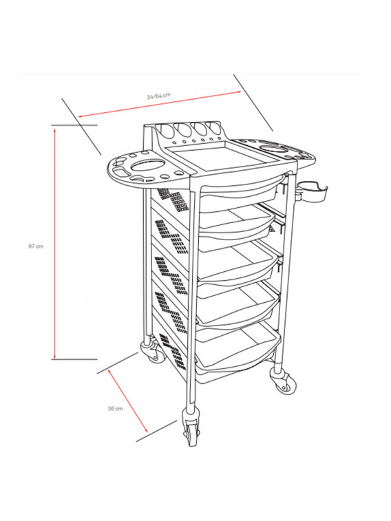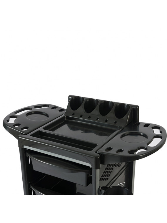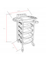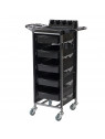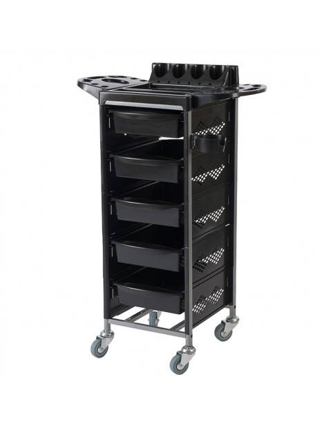Carrito de peluquería con 5 cajones extraíbles y amplia bandeja superior con múltiples compartimentos para almacenar tus herramientas de trabajo.