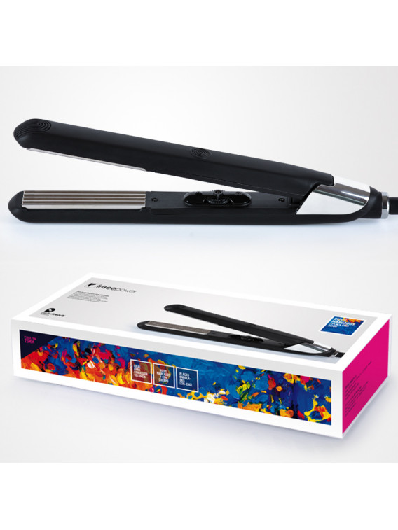 Plancha profesional con placas onduladas de titanio y un regulador de temperatura que permite alcanzar los 230º C. Con una sola pasada conseguirás un resultado perfecto. Especialmente diseñada para obtener rizos marcados y con cuerpo. Crea un estilo único y duradero con acabado profesional