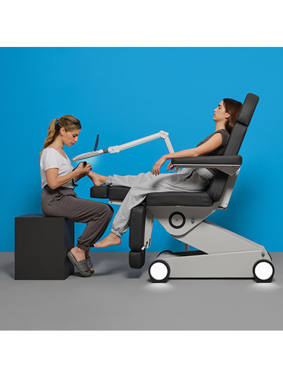 Sillón de podología de alta gama que destaca por su diseño innovador.