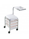 Mesa asiento manicura con bandeja. 3 cajones, cojín apoyamanos y ruedecitas para un fácil manejo.